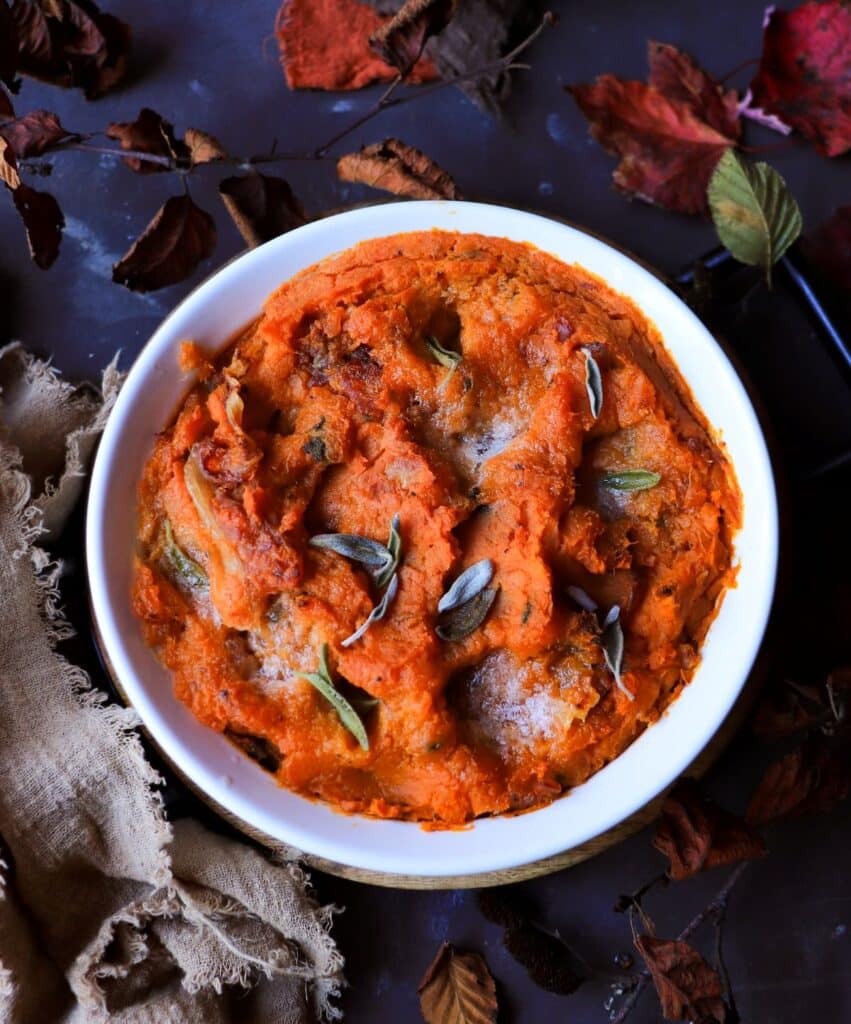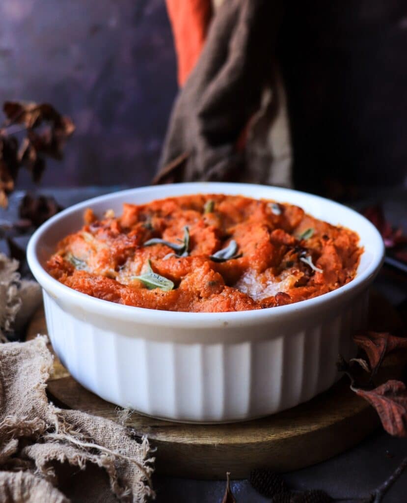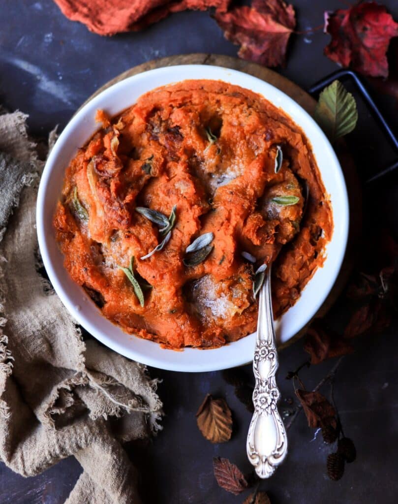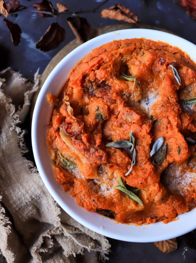While traditional sweet potato casseroles are a beloved classic, they are not my thing. I mean, how could you consider an overly sweet dish, especially when topped with marshmallows or syrup, a side dish? No, thanks.