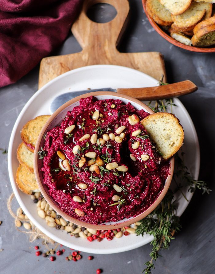 Switching over to the recipe, this one looks beautiful! I’ve never made a dip from beets, but I have made a dip from carrots. I’ll have to try this. The pine nuts add a fun twist! Hang in there, my friend!