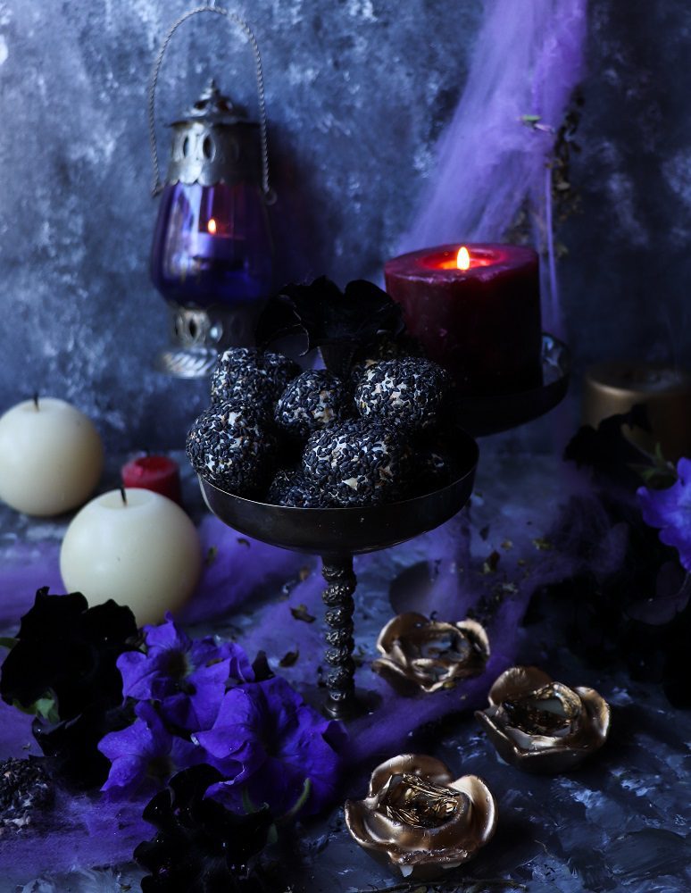 These Black Sesame Halloween Cheese Balls offer a delicious contrast of flavours and textures. The creamy, slightly tangy cheese base blends beautifully with the toasted sesame’s nutty richness, while the hint of honey adds gentle sweetness. The exterior is pleasantly crunchy, giving way to a smooth, luscious interior. Together, the combination is earthy, aromatic, and subtly indulgent – a small bite that perfectly captures the essence of a sophisticated Black Sesame Halloween Appetizer.