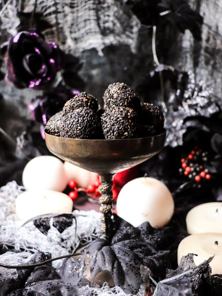 These Black Sesame Seed Brigadeiro are an elegant twist on beloved Brazilian Fudgy Balls. With their jet-black hue, nutty aroma, and fudgy texture, they’re the perfect addition to a spooky Halloween spread – or anytime you crave something both familiar and surprising.
