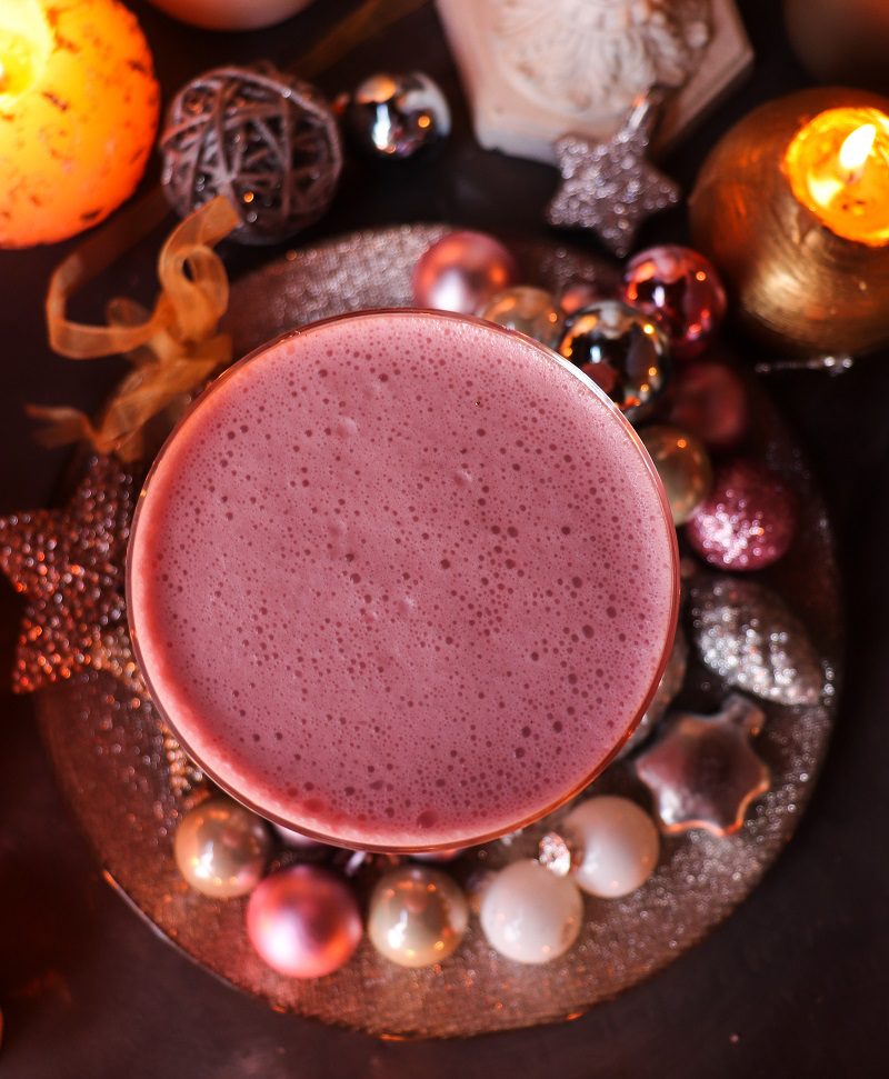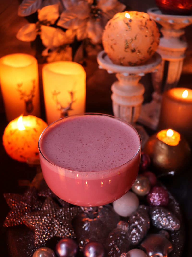 The color is so pretty on this candy cane liqueur! It is perfect for Christmas celebrations! Loving the color story on these photos too.