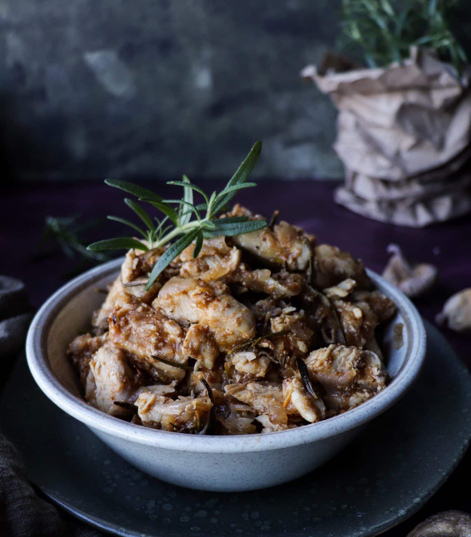 This Chicken with White Wine, Figs and Rosemary is an easy and quick dish that requires a short list of ingredients and less than 30 minutes on hand. And despite the simplicity, the recipe’s texture and flavour profile is complex and lovely. Soft chicken, sweet dried figs, savoury rosemary, and a subtle aroma of dried white wine – this recipe will not disappoint you!
