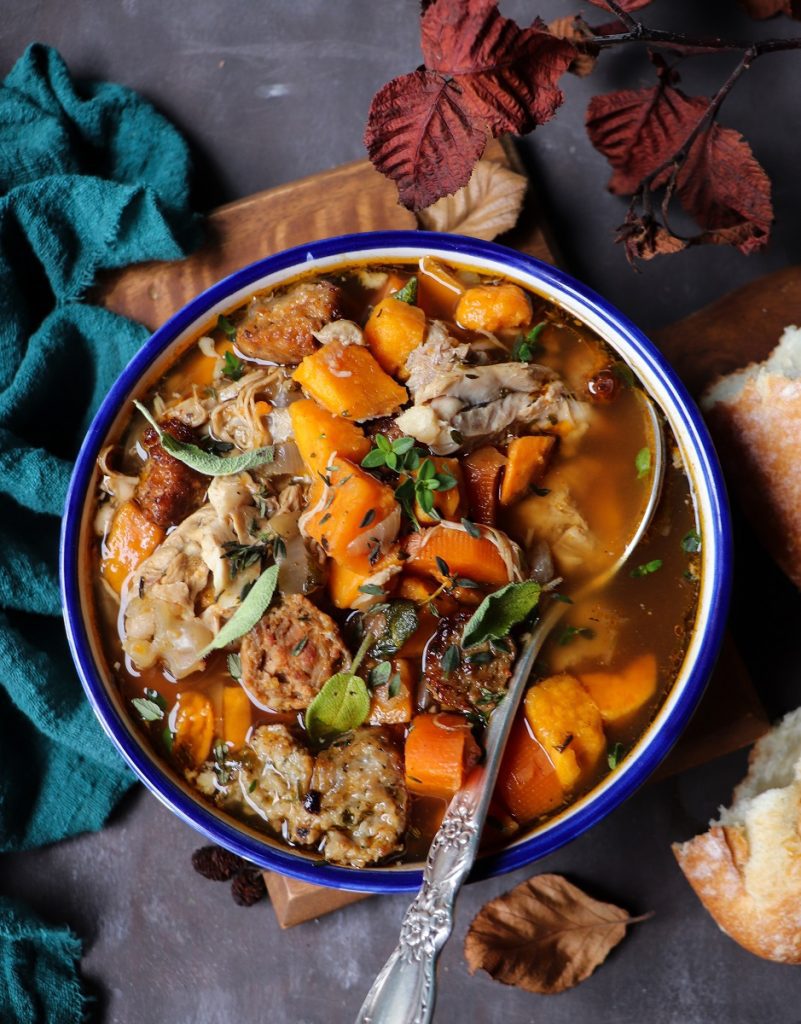 This Chunky Sweet Potato Soup with chicken, Italian sausage, and herbs is utterly hearty, soul-warming, flavourful, and delicious.