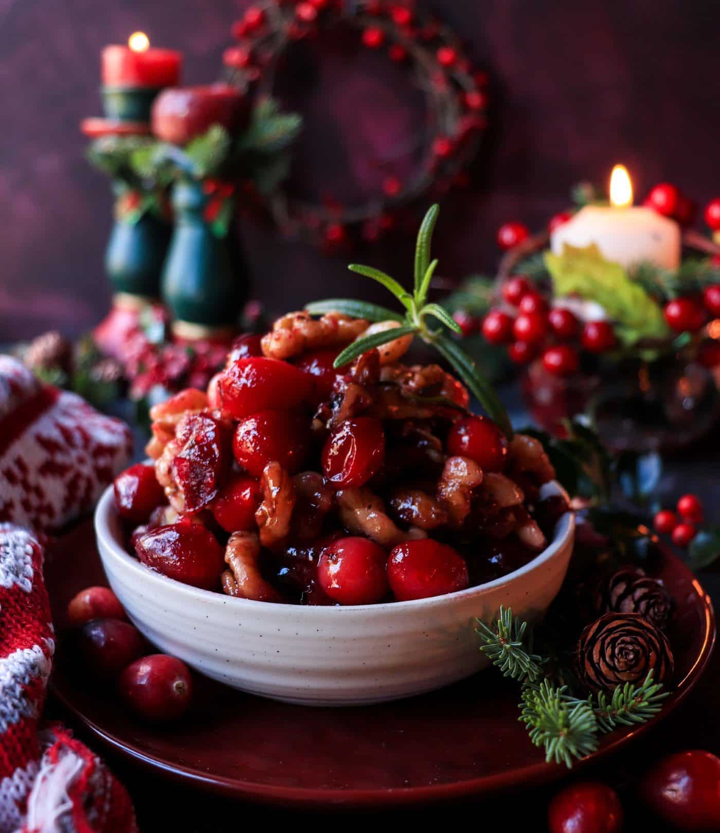 This sauce is packed with a ton of flavour coming from fruit and spices. And did I mention brandy? It is quite tart, so you can go ahead and add more sweetness if you prefer. Personally, when it comes to sauce, I love using honey as it balances out the tartness of cranberries so well.