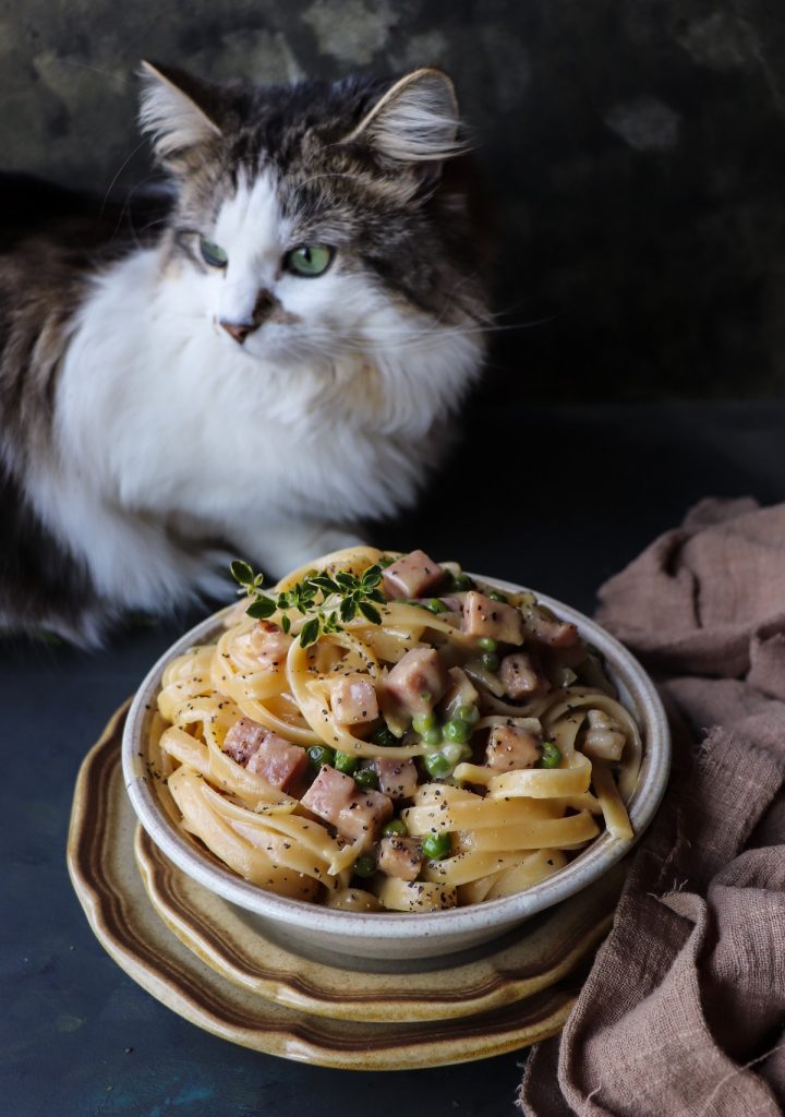This pasta is exactly that kind of recipe, super rich and indulgent – a pasta recipe to enjoy thought winter. As all recipes I have been sharing so far in 2024, I made and photographed it last winter. Yeah, Daisy was still a 3-year cat – she has turned four now!