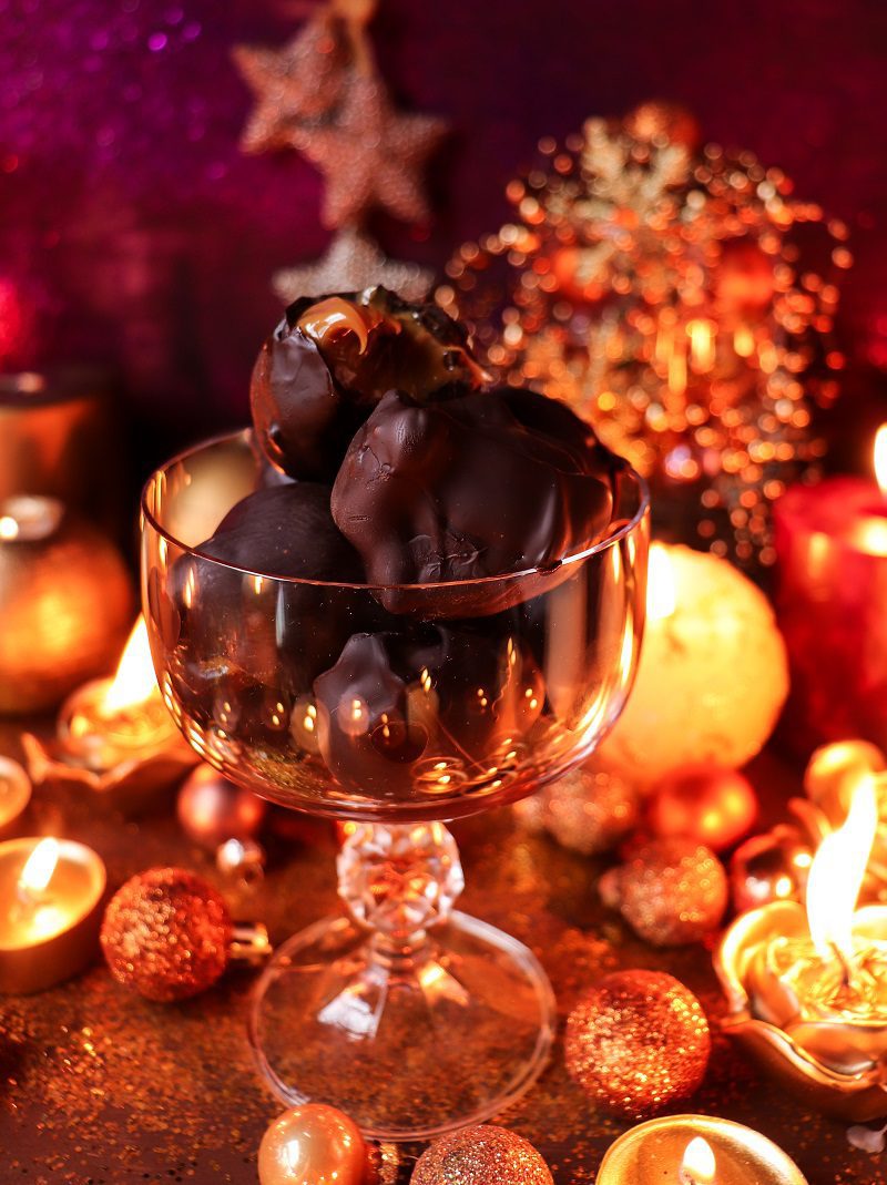 Arrange these individual morsels onto a tray or plate and freeze for at least 40-60 minutes or until firm enough. Most likely, you will need even 2-3 hours. Once they’ve formed, you can correct their shape by making more perfect balls. Place them back into the freezer until the chocolate is ready.