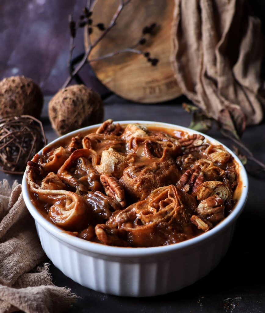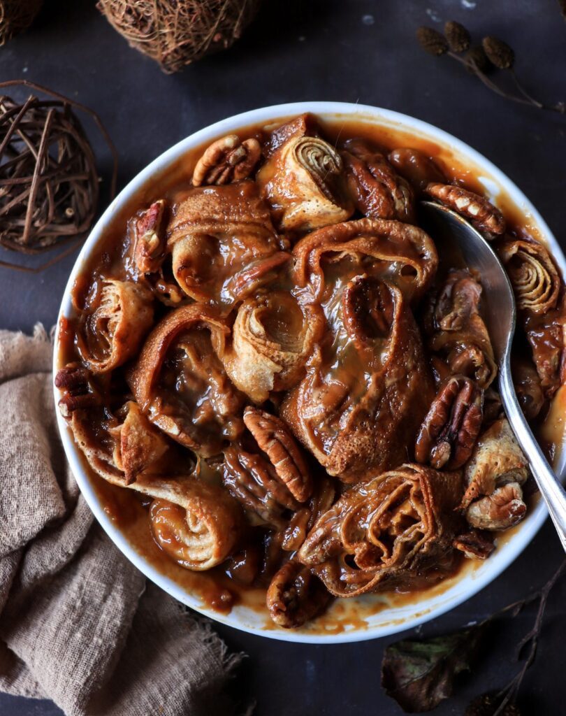 Dulce de Leche Crêpe Bake with pecans and brandy is a decadent, luscious, and luxurious dessert recipe for any occasion.