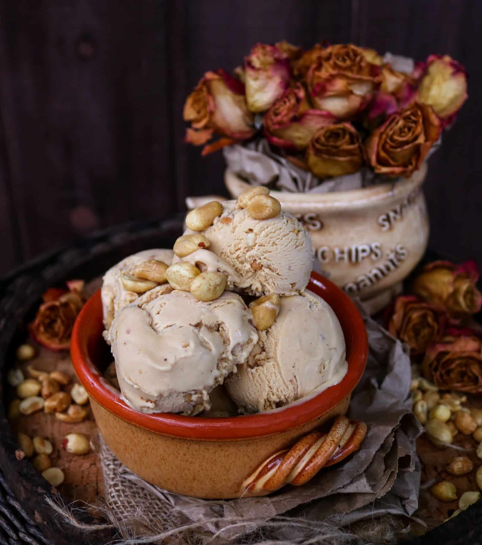 Dulce de Leche Peanut Butter Ice Cream with salted peanuts is a delightful farewell to the summer.
