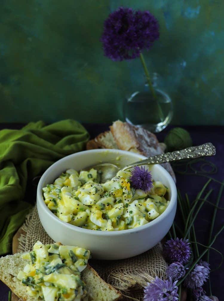 Yes, indeed – we do have lots of chives now, and they are the only item onion family that I can eat raw! I am so happy you posted this, and love the combo of sour cream/yogurt with the mayo. I do that for potato salad but never for egg. Brilliant!