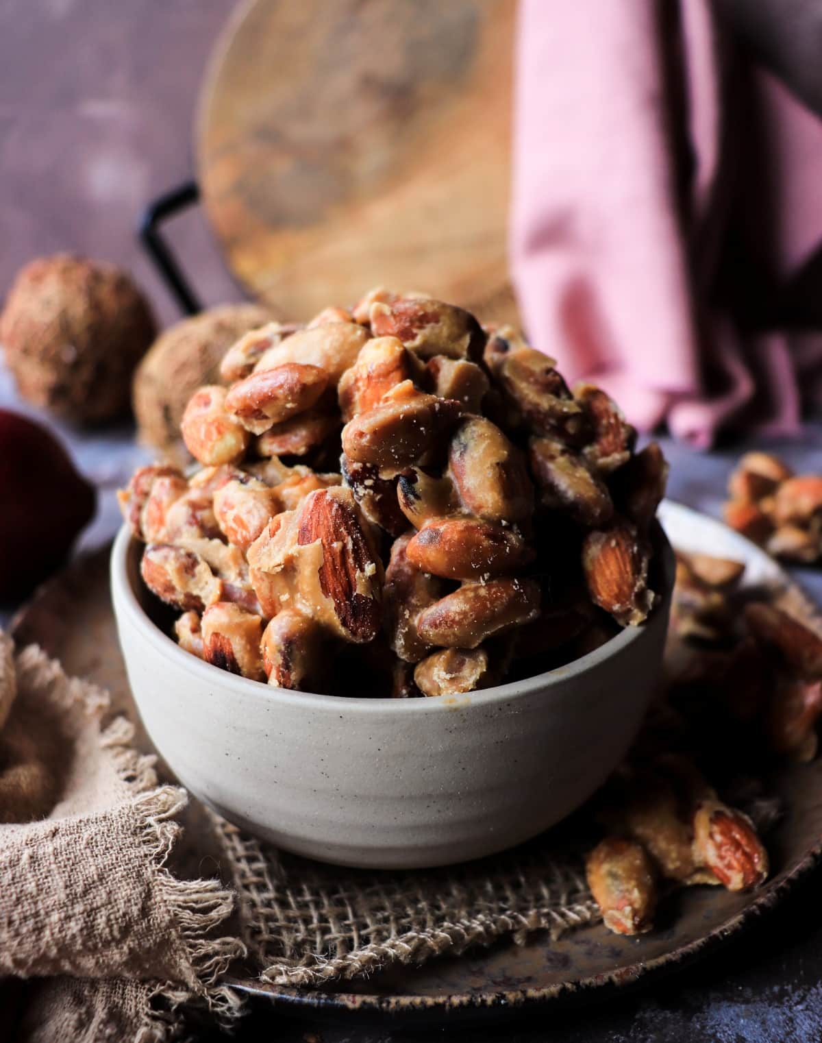 It’s easy to make these maple candied almonds with just a handful of ingredients: