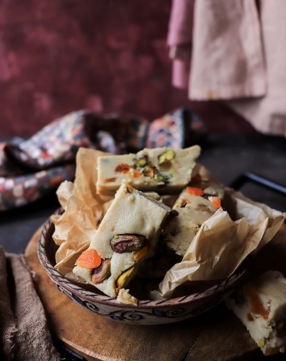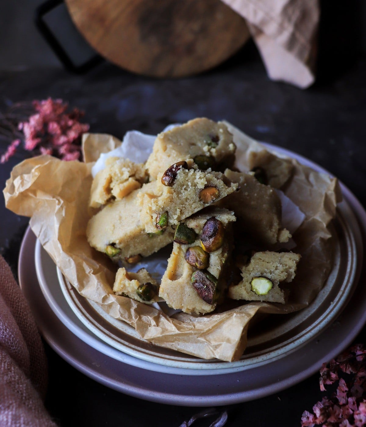 Tahini Halva with Pistachios, Dried Apricots, and Rose