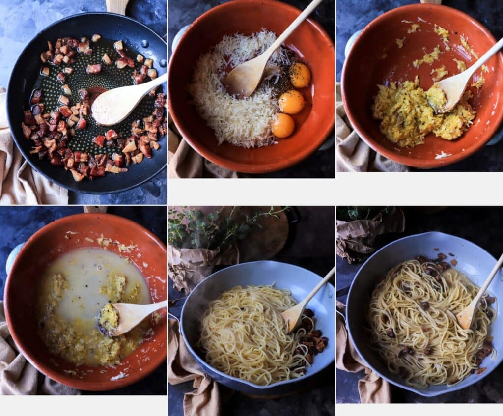 - Use more pasta water than you think you need, especially when using only egg yolks.