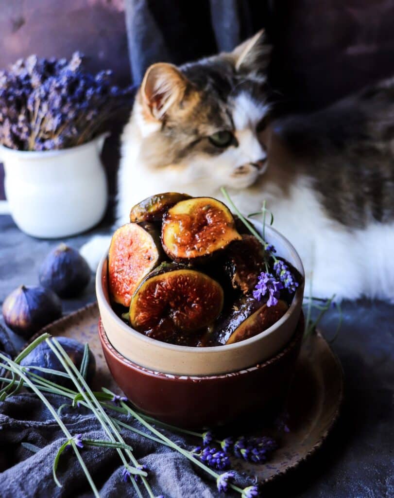 Today, I’m excited to share another delicious lavender and fig recipe. Enjoy these caramelized figs as a treat or as part of a spread—honey and lavender make them sure to impress.