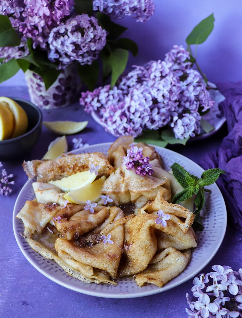 It is no secret I am obsessed with lilac-infused recipes for second summer. You can check all lilac ideas here. And don’t forget to check out my last week’s recipe for Lilac Empress 1908 Cocktail. You probably also know I am a huge fan of crêpes, too. Particularly sweet crepes with some fancy sauces.