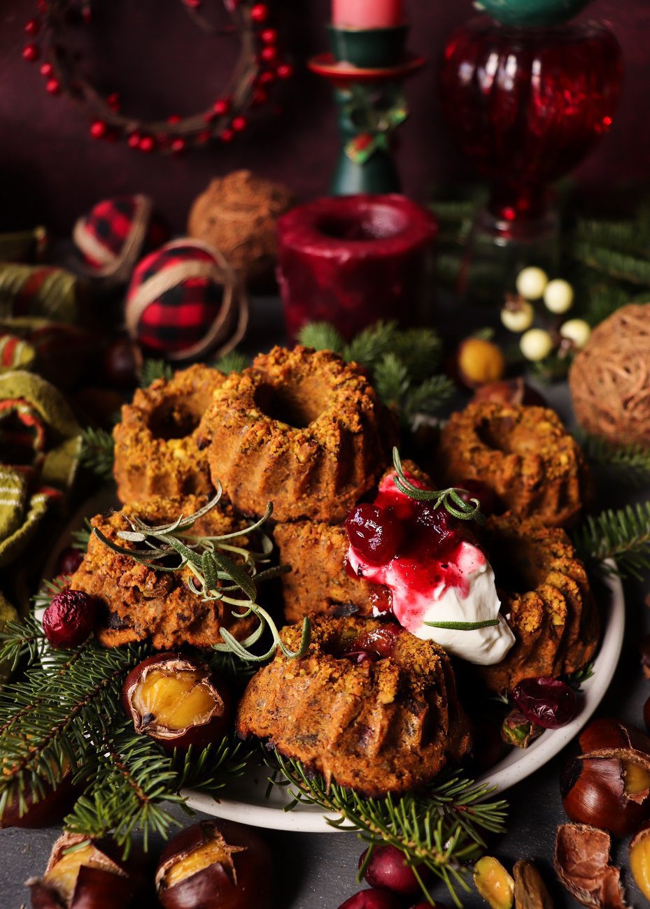 I know you’re probably enjoying holiday baking these days. But let me please interrupt you with another savoury recipe – these bundt -shaped Mini Pistachio Nut Roasts! No one will argue that cookies and eggnog are essential holiday foods; however, we shouldn’t forget about some nutritious. And these little bites despite the size are packed with protein, fiber, and healthy fats. Excellent addition to your dinner table or just a healthy snack!