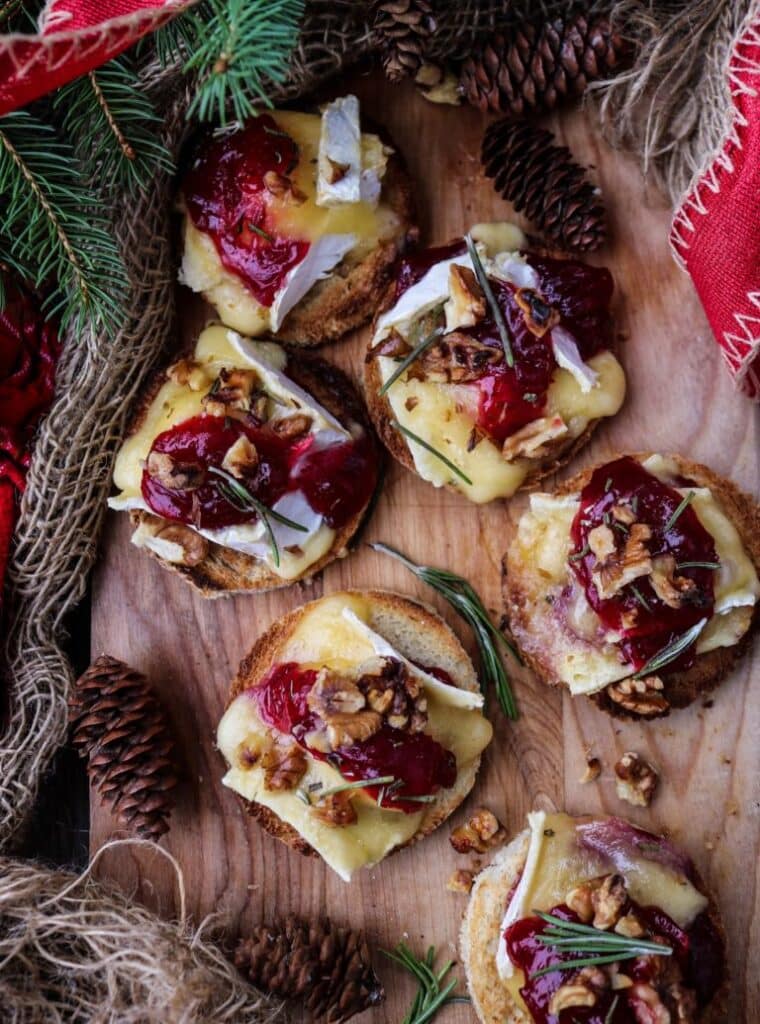 These Brie Lingonberry Jam Crostini are the definition of a festive appetizer – easy to make, elegant to serve, and bursting with holiday flavour. Toasted bread topped with creamy brie, sweet-tart lingonberry jam, toasted nuts, and a hint of rosemary creates a perfect bite for Christmas or New Year’s entertaining. This brie lingonberry jam crostini recipe is quick, beautiful, and wonderfully seasonal – a sure way to impress your guests with minimal effort.