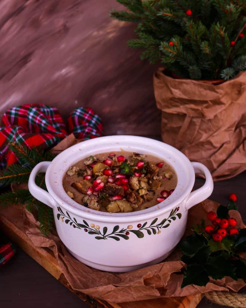 Creamy, silky, and soul-warming, this delicious Porcini Mushroom Chestnut Soup is an comfort food recipe that can also be enjoyed during the winter holidays.