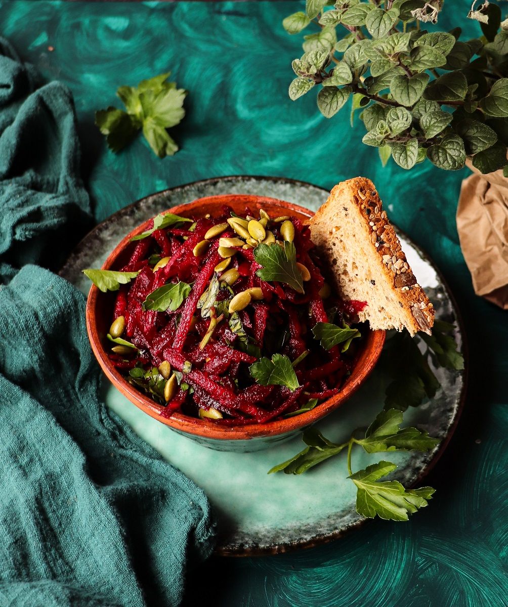 I do love beetroots, but I’ve never tried them raw before. This recipe seems super easy to make and the combination of pumpkin seeds and herbs sounds perfect.