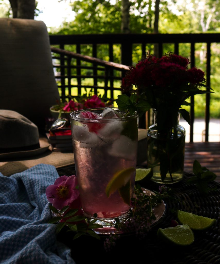 Talking about this Rose Lemonade, I am quite embarrassed to consider it a recipe. But the photos are pretty good, and the lemonade itself is wonderful. For this lemonade, you will need to make Rose Syrup or Rose Petal Jam first. I did like using the jam as petals are a beautiful addition, visually. Since the season of wild roses, I assume, is almost over, you can make a simple syrup infused with rose water. Be creative, too – the combination of rose flavour with berries and fruit (Think of strawberries, raspberries, and peaches) would be fantastic!