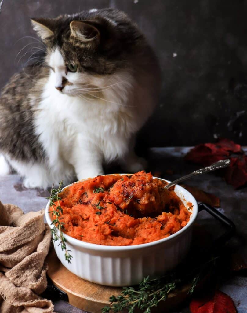 Classic sweet potato casseroles often lean heavily on brown sugar and marshmallows, which can overshadow the natural earthy sweetness of the potatoes themselves. In contrast, a savory recipe for mashed sweet potatoes enhances and balances their natural sweetness rather than masking it. Butter, herbs, and spices accentuate their creamy texture and subtle sweetness, adding depth and sophistication. The result does not feel like dessert – and feels like a satisfying, savoury side dish that pairs beautifully with roasted meats, poultry, or even vegetarian mains.