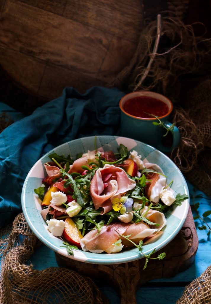 This delightful Peach Prosciutto Mozzarella Salad with a refreshing strawberry mint sparkling wine dressing will be one of the culinary highlights of your summer.