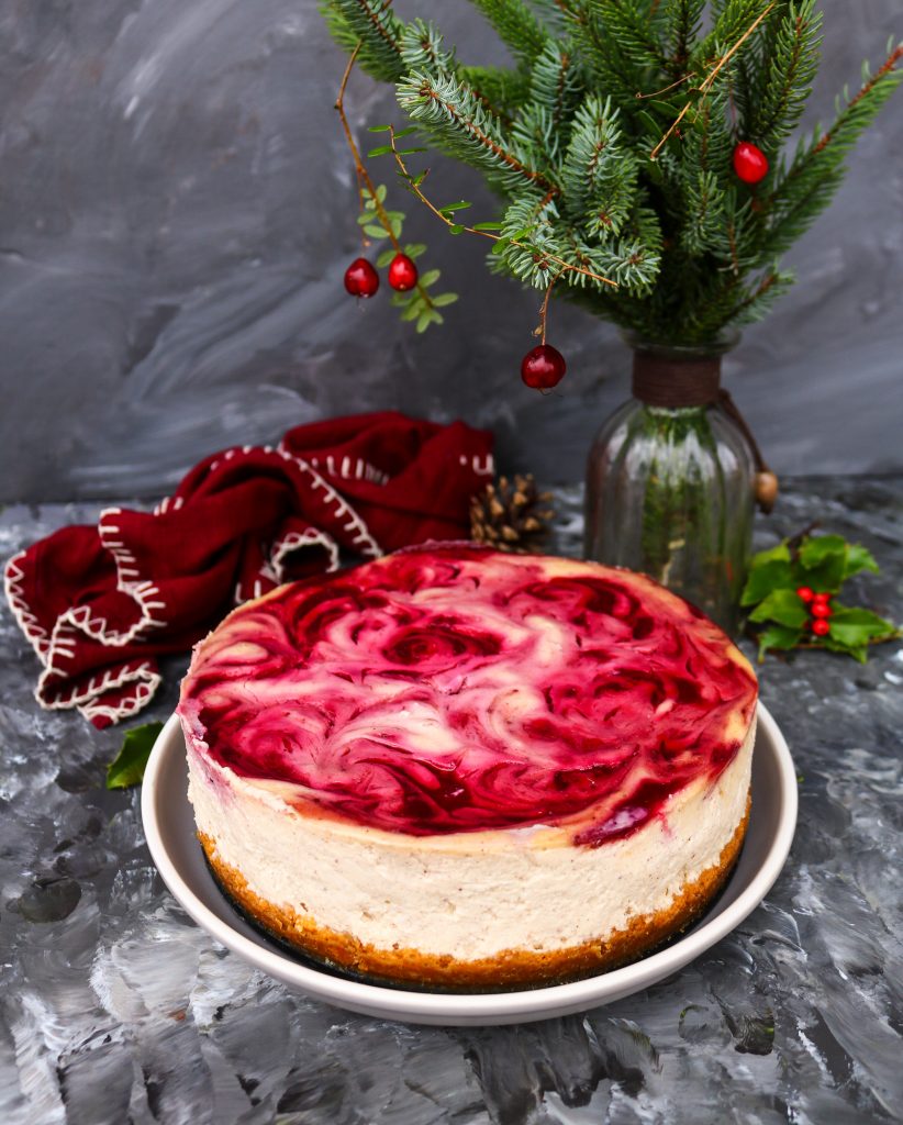 I love the look of this cheesecake, Ben! The cranberry sauce swirled into the top is stunning. (And it’s a great way to hide those cracks – haha.) Also, thanks for naming this cake after me. :-)
