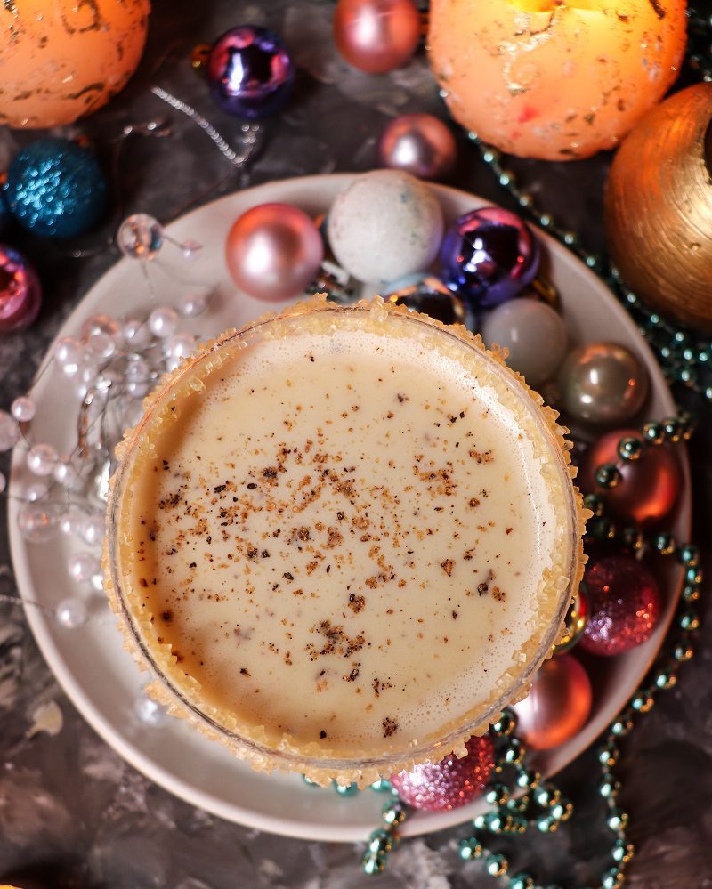I know many of you do not like overly sweet and light cocktails. So this one will be right up your street! It’s strong. Even though it includes white chocolate, it does not add too much of the sweetness, but it beautifully affects the consistency. So rich, so silky, so smooth, so dreamy. The warming spices like nutmeg and natural vanilla seeds add both subtle sweetness and cozy vibes. The flavour (And actually the texture, too) resemble eggnog, I think. Especially if you are using rum.