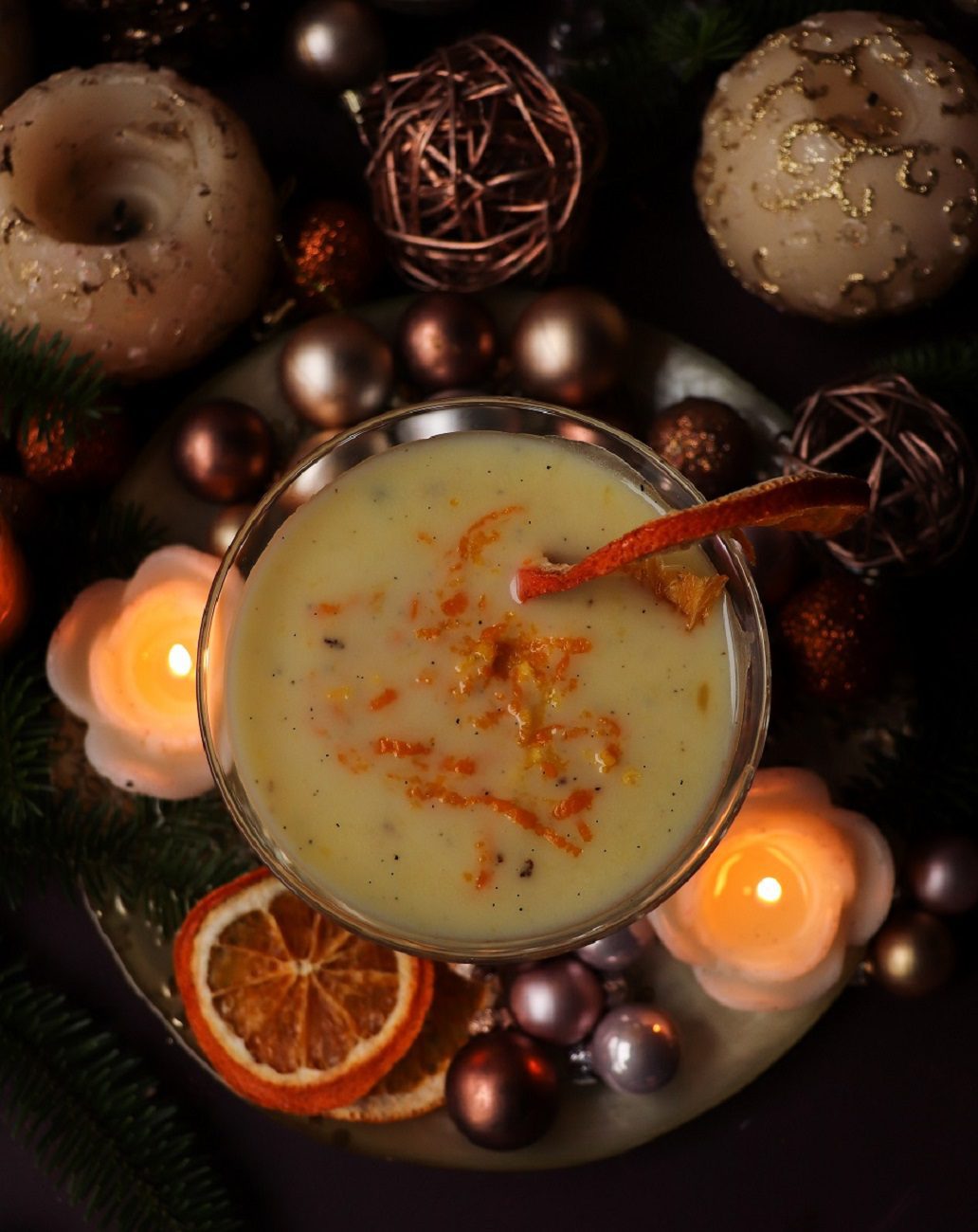 This cocktail is creamy, silky, and rich with a mellow sweetness from the melted chocolate. The orange notes add brightness, while vanilla brings warmth and depth. Altogether it tastes festive, smooth, and perfectly balanced – an exquisite winter sip with dessert-like qualities.