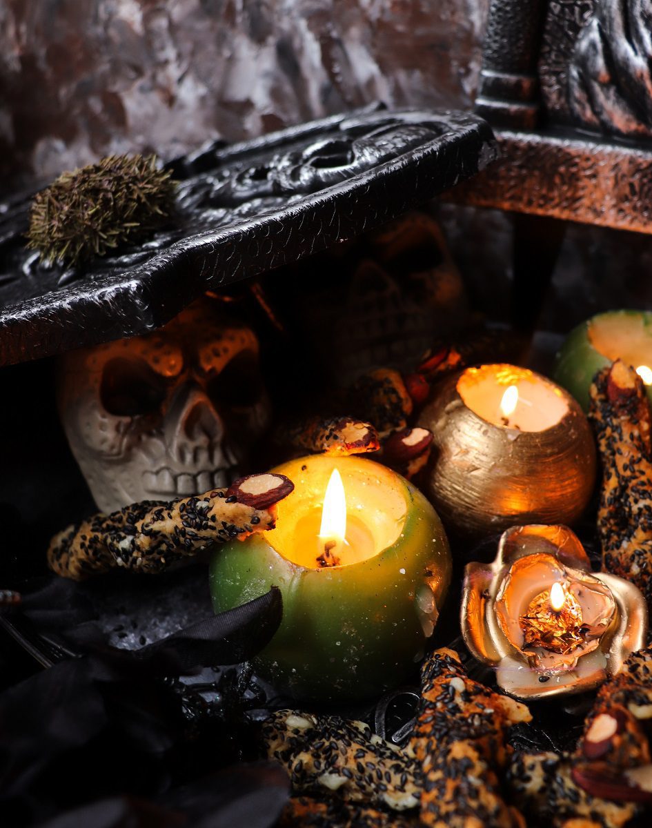 When it comes to Halloween bakes, I am not into those recipes where you heavily rely on decorating (Ex.: using culinary paint, frosting, etc.) Or any decor at all. I prefer the dishes that look pretty normal (aka you will probably not consider them Halloween-ish if seen at daylight) – with the photography’s overall mood and ambience bringing that vibe.